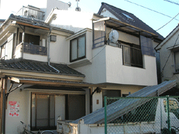 築50年で相当老朽化が進んでいた建物で元々、一階が住まいで二階がアパートだった建物を左右2分割の二世帯住宅にした。屋根は…