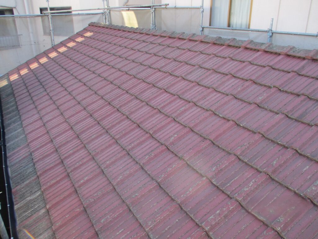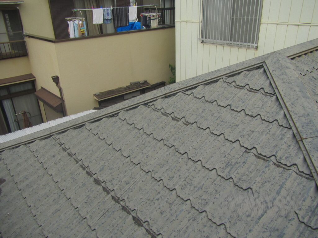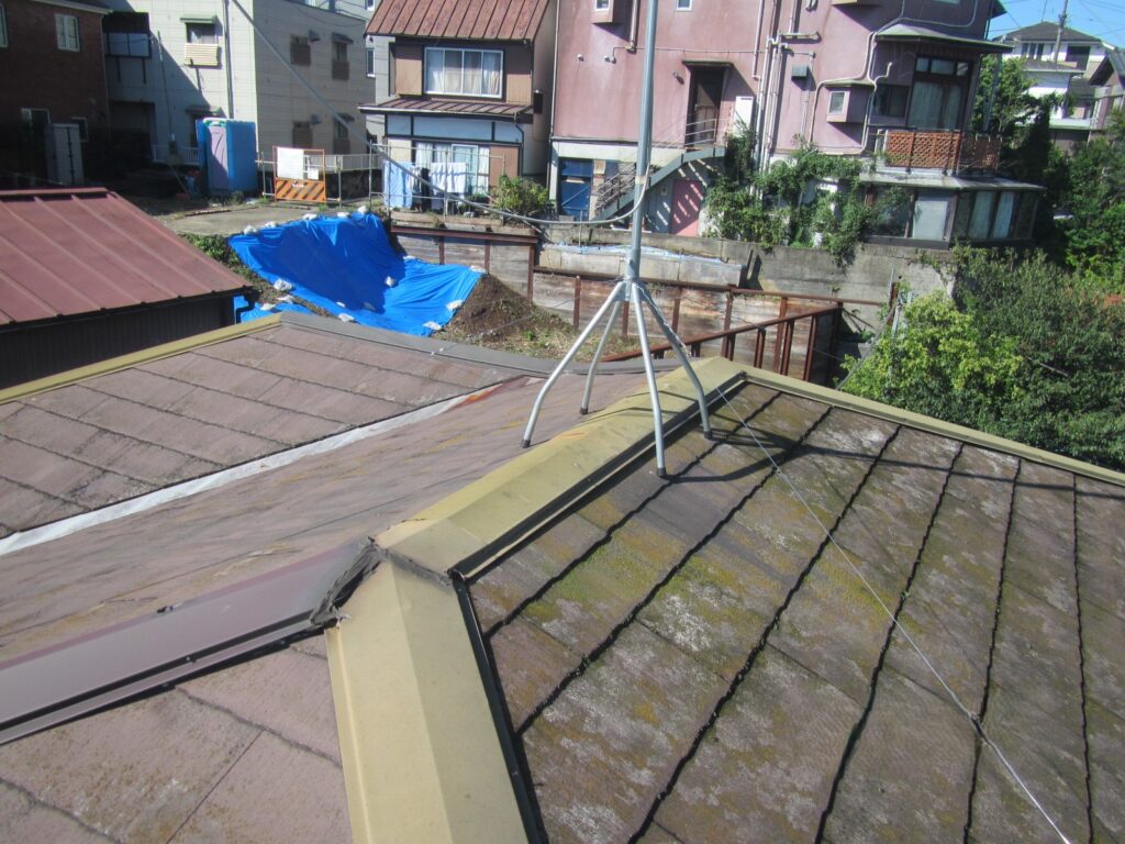 築50年で相当老朽化が進んでいた建物で元々、一階が住まいで二階がアパートだった建物を左右2分割の二世帯住宅にした。屋根は…